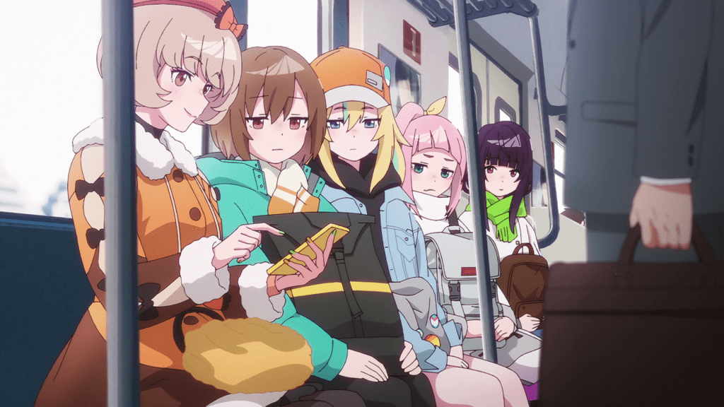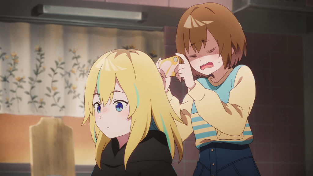 As Kano struggles to write lyrics for a new song (I’m convinced her feelings towards Yoru has something to do with it), Kiui reveals that JELEE has received a commission from Miiko. Upon meeting Miiko, JELEE learns that the idol is actually not 17 years old as she claims but is instead 31. Considering that a lot of anime characters don’t look their age, I’m both surprised and unsurprised at the same time. Anyway, because Miiko is so “old” and unpopular, she risks getting fired from her talent agency so she asks JELEE to create a new song for her next gig. To coerce the girls into helping her, Miiko brings up the fact that Kano and Yoru hijacked her livestream as a stepping stone for JELEE’s career. That’s a bit of a slimy move for an adult to make but Miiko isn’t wrong that JELEE took advantage of her so the girls should do her a favor.
