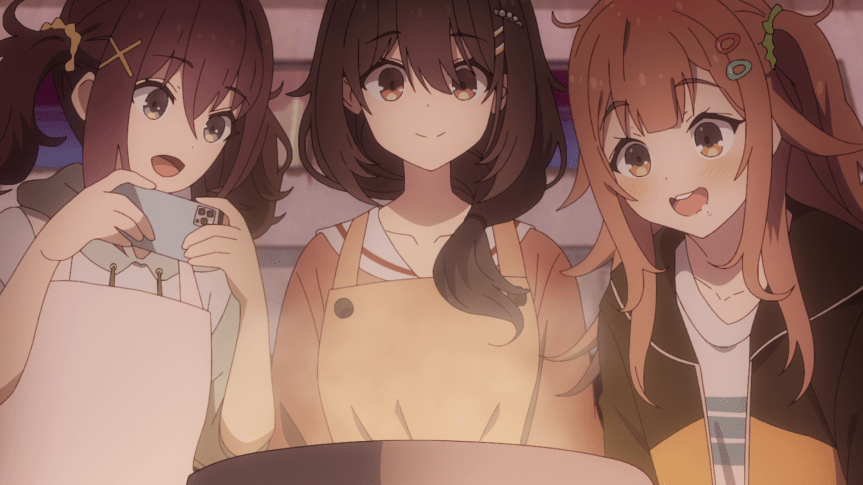 As funny as it would’ve been for Mako to quit the club on day one, it would admittedly be a bit out of character for her to do that. So while Mako is a bit bummed to learn that the Food Culture Research Club isn’t intended to do research on anything, she agrees with Kurea to just go along with the flow. That said, Mako hasn’t completely given up. A couple scenes later, Mako watches a cooking video by her favorite mascot, Mokotaro, and becomes interested in making pilaf with her new friends. The only issues are whether or not the club would be interested and if Mako can even cook in the first place. I’m a little concerned that Mako constantly has visions of Mokotaro, even picturing herself as the character at one point, but I doubt there’s any actual creepy undercurrent to it…right?