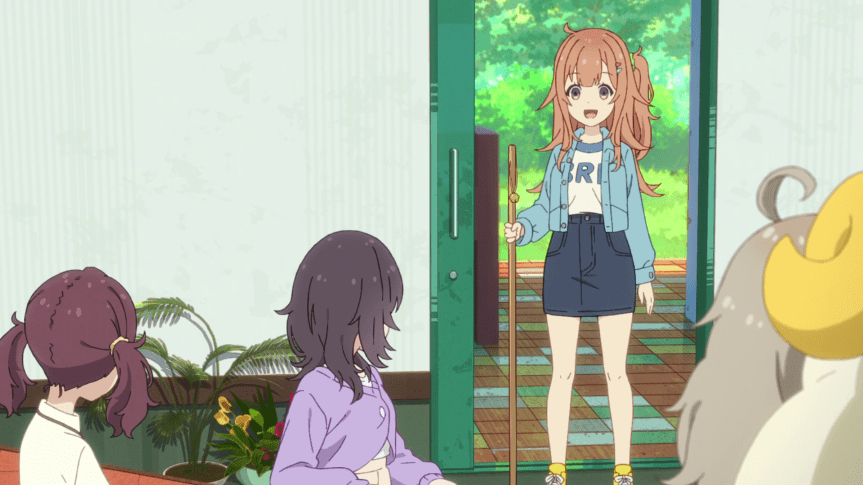 You may be wondering how food is involved in this episode, what with this show being food-themed. There’s a brief bit where Mako is raring to eat some food while hiking up the mountain. Unfortunately, her dream gets dashed because Kurea doesn’t want the club to wander off to buy food and merch. On the flipside, one of the pit stops is a restaurant featured in a Mokotaro video. This is really the only times food actually factors into this episode and even then, it kind of lacks the tidbits and buildup last episode’s cooking scene had. On one hand, CGDCT anime neglecting its own theme is kind of par for the course. Conversely, the Food Culture Research Club is inherently a sham so I don’t know. Maybe it’s a little unfair to harp on this when the show has an excuse built-in.