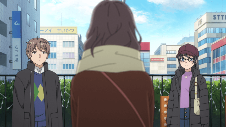 Sakuta of course informs Mai of the change of plans though to his and Sara’s surprise, Mai meets up with them and offers to drive them to Kamakura. This of course means that Sara and Sakuta’s dream of a Christmas Eve date is thrown out the window. Funnily enough, this is not the first time Mai changes the future. Mai explains that over at Kamakura, they can buy Touko’s favorite desert, Mont Blanc, which would be perfect for leaving her open for Sara to make contact with her. Really though, Mai’s motivation is probably a little more selfish. Mai has been very accepting with her and Sakuta’s plans constantly changing. Case in point, she was okay with Sakuta spending part of her birthday meeting up with Touko. Still, it would not surprise me if she has some limits. Considering it’s Christmas Eve and Sara is so blatantly smitten with Sakuta, I can understand Mai feeling less accommodating than usual.