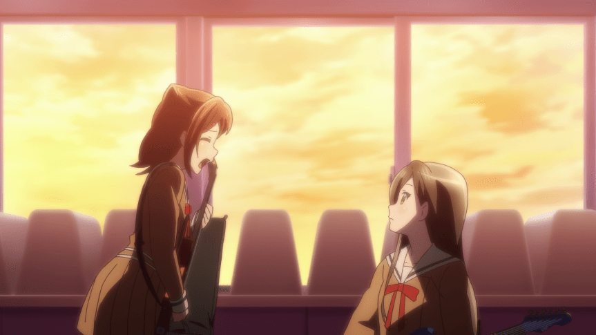 With Yuri’s help, Kasumi is able to find and buy a carrying case for her guitar, allowing her to bring the instrument with her to school. While showing her guitar off to some classmates, Kasumi learns that Tae is also a guitarist. During a home economics class, both Kasumi and Tae come up with the idea to craft bags for their guitar cases, which honestly sounds redundant but whatever, just roll with it. When both girls fail finish their projects in time, their teacher has them finish the assignment after school. The supplementary period soon stretches out across multiple days as the girls become fast friends, with Kasumi giving Tae the nickname “O-Tae” and Tae offering to teach her how to play the guitar.