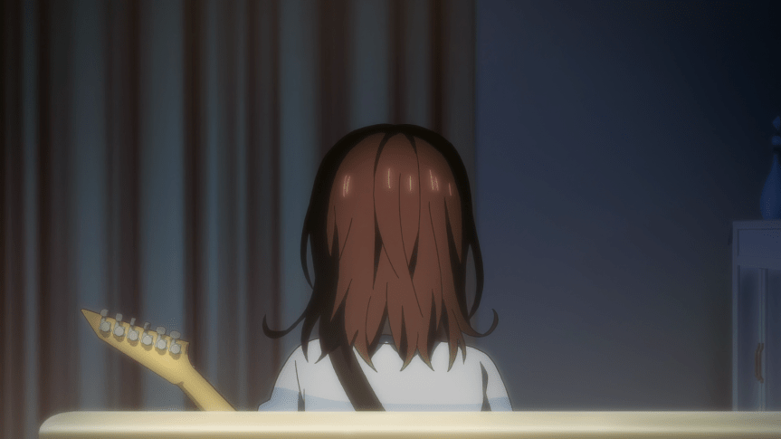 Poppin’Party proceeds to practice more for the audition, with Kasumi in particular taking it more seriously than usual. During one such practice session, Kasumi injures herself, leading Arisa to grab her first-aid kit. Arisa then takes the opportunity to talk to Kasumi about the audition. I really like that Arisa raises a good point that Kasumi is trying too hard and she doesn’t look like she’s having fun anymore, only for Kasumi to spin the conversation around and ask Arisa whether or not she’s having fun in the band herself. It highlights both characters’ major flaws. Like, Arisa has been the tsundere in the group. It’s rather atypical of her to show concern outright so she can’t really ask Kasumi if she’s enjoying the band without being asked the same thing. I think if Arisa was more open with her feelings, the conversation wouldn’t derail itself as much. Meanwhile, Kasumi changing the topic is a bit indicative of a bad habit we’re seeing in her, how she’s too optimistic and too focused on the audition and not really seeing the big picture (in this case, her constantly practicing the guitar possibly doing more harm than good).