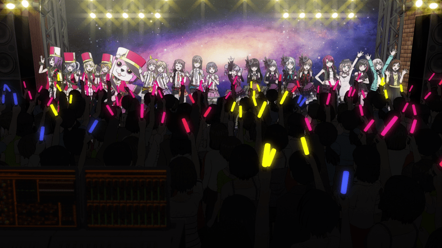 Regarding the music, there is actually quite a lot of that this time around. Every band this season performs an insert song this episode, with PasuPare performing one at the start of the episode and the remaining four bands performing during the live show at Galaxy. I’m not kidding: with five songs in the first episode alone, Season 2 almost has the same number of insert songs as Season 1. It’s a little overwhelming and I do hope things will slow time after this episode but for the season premiere, I completely get having each of the five bands showing off their music. Having a PasuPare song at the beginning is especially smart since it sets the precedent that you won’t just hear PoPiPa this season. Also, by having each band back to back, you quickly see how they differ in genre or style such as Roselia specializing in Gothic rock and HaroHapi sounding like they make jingles for children’s programming. I don’t know why but I can’t help but think PoPiPa sounds better than they did before. Maybe it’s just a placebo but it does feel like the cast and the producers gained a lot of experience in the two years since Season 1 aired.