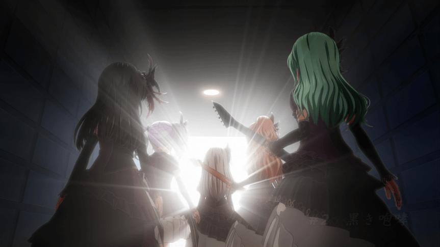 On the day of the live show, PoPiPa learn some ropes from Roselia. Preparations don’t entirely go without a hitch. Roselia pass out at one point due to setting up the stage by themselves and they still work out the kinks even when the show is hours away. Overall though, you can tell that Sayo and Rinko were not kidding when they told Arisa that Roselia really planned out their live show. Really though, the big takeaway for PoPiPa comes during the show itself. Their guest performance is a success but then Roselia steps up to the stage and it immediately becomes apparent that the latter is at a different level, drawing in a much larger audience and delivering a concert that commands the people’s attention. I suppose the episode is cheating here by skimming over PoPiPa’s performance and actually showing the viewer Roselia’s but it does convey what the in-universe audience is feeling. PoPiPa is pretty good here but the band they’ll be remembering after the show is Roselia. Also, it sure is great to hear Roselia insert songs across two episodes back to back. It feels like the show is overcompensating for the zero performances the band did in Season 1 but I ain’t complaining.